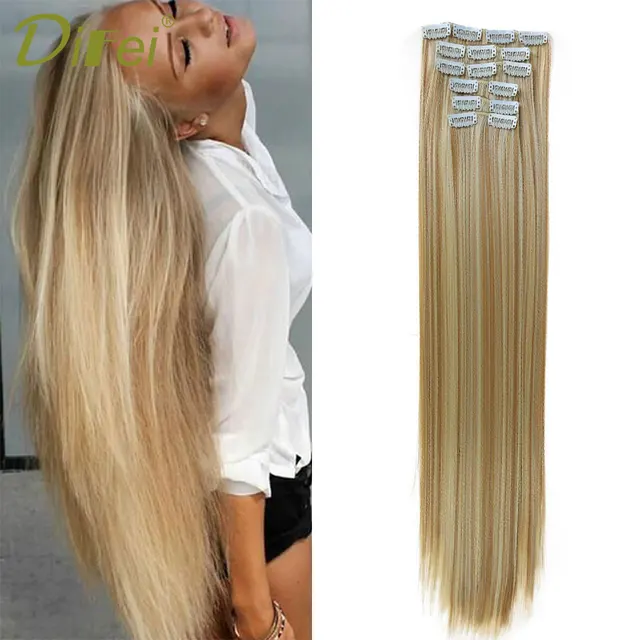 Best Price DIFEI 24'' Long 6 pcs/set Straight Hair Extension 11 Color 16 Clips In On Hair Extensions Heat Resistant Hairpiece