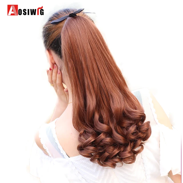 Cheap Long Curly Ponytail Drawstring Clip In Ponytail Synthetic Hair Extensions High Temperature Fiber Hair AOSIWIG Compare Prices