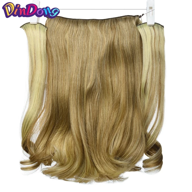 Special Price DinDong Flip in Hair 18 inch Black Brown Fish Line Wavy Hair Extensions Synthetic Secret Invisible Wire Hair pieces With Clips Cheap Online
