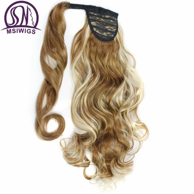 Best Offers MSIWIGS False Hair Wrap On Magic Tape Synthetic Wavy Women's Ponytail Hairpieces Heat Resistant Natural Clip In Hair Extension Compare Prices For