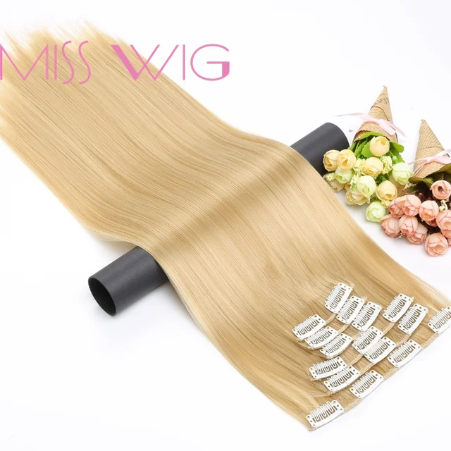 Cheap MISS WIG 15Colors Available 24" 16 Clips in Hair Extensions Straight Hairstyle Synthetic Hairpieces False Hair