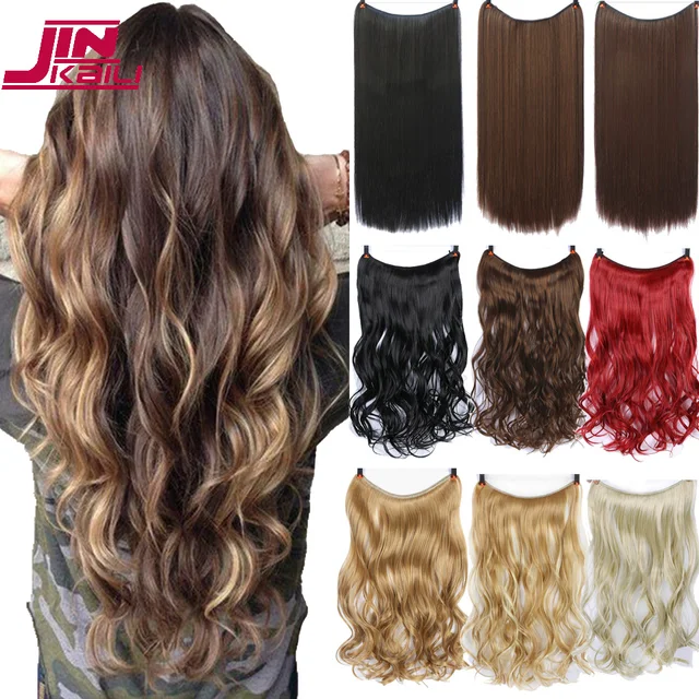 Best Offers 24 inch Long Synthetic Hair Heat Resistant Hairpiece Fish Line Straight Hair Extensions Secret Invisible Hairpieces JINKAILI