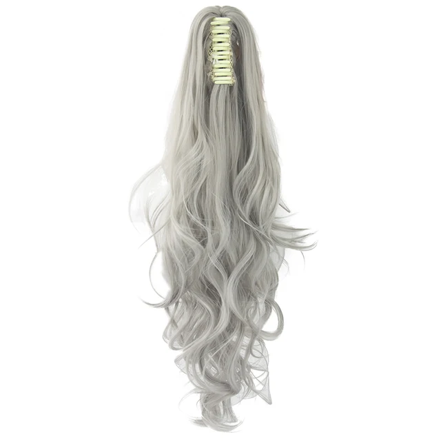 Cheap Soowee 24inch Long Gray Blonde Wavy Clip on Hairpiece Extensions Pony Tail High Temperature Fiber Synthetic Hair Claw Ponytails Compare Prices
