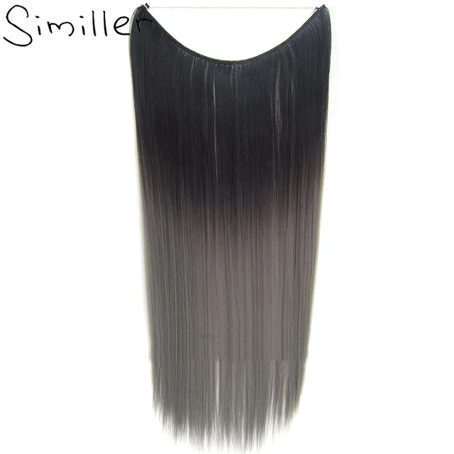 Cheap Similler Women Fish Line Hair Extensions Black Grey Natural Straight 55cm Long High Tempreture Synthetic Hairpiece Deals For
