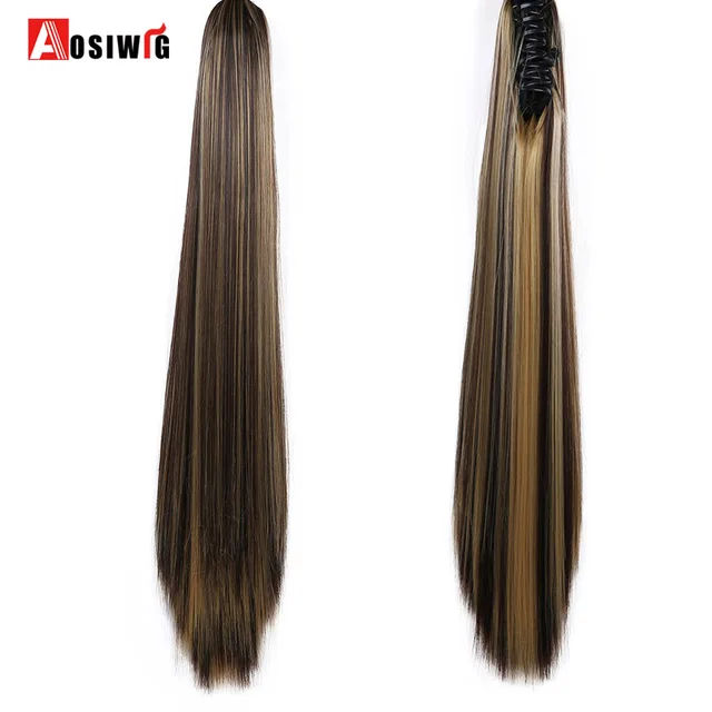 Special Price AOSIWIG 24'' Long Straight Ponytail Hair Natural Fake Hair Tail Hairpieces Women Hairstyles Synthetic Heat Resistant Fake Hair Where Can I Buy