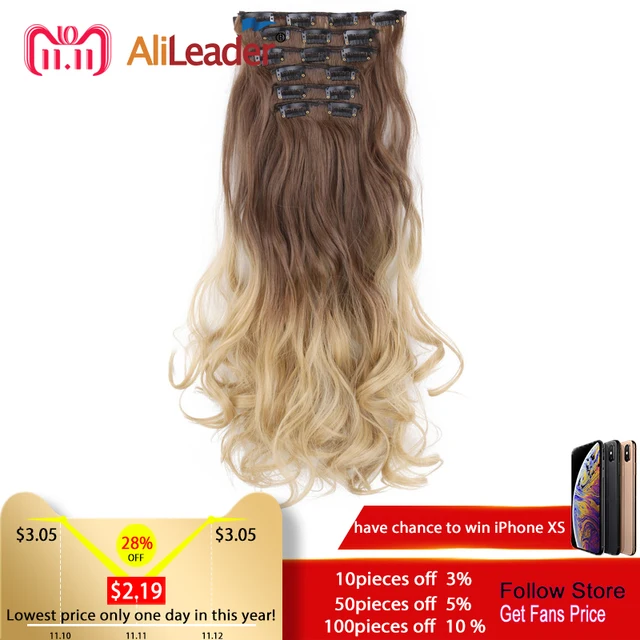 Best Offers Alileader Hair 22inch 16clips Hairpiece Body Wave Synthetic High Temperature Fiber Black Brown Ombre Clip In Hair Extensions Best Reviews Of