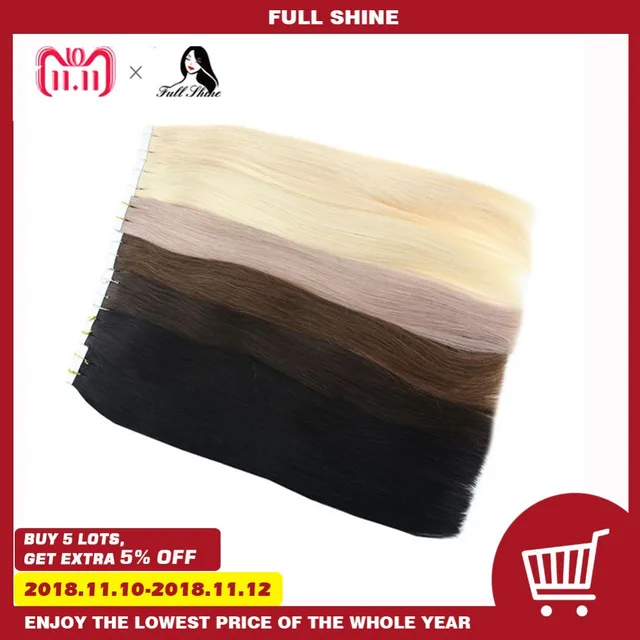 Best Offers Full Shine Tape In Hair Extensions 100% Human Remy Hair 100g 40 Pcs Colorful Tape on Hair Extension Skin Weft Glue on Hair