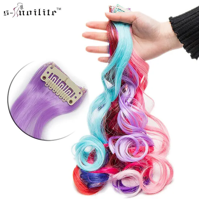 Best Offers SNOILITE 22inch 56cm 10pcs/lot Clip In One Piece Hair Extensions For Women man Hair Piece curly Rainbow Colors hairpieces Price comparisons Of