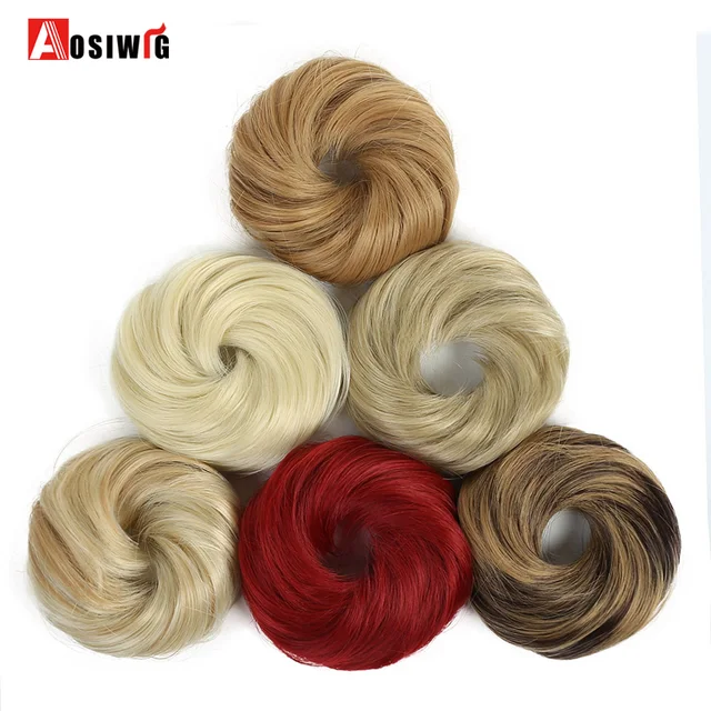 Best Price AOSIWIG Short Straight Hair Bun Heat Resistant Synthetic Hairpieces Clip In Hair Extensions Women Hairstyles