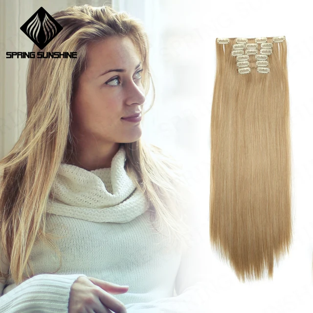 Special Offers Spring sunshine 22'' 140G Long Silky Straight 16Clips In Hair Extensions Synthetic Fake Hairpiece False hair Clips Real Natural Who Sells Sheap