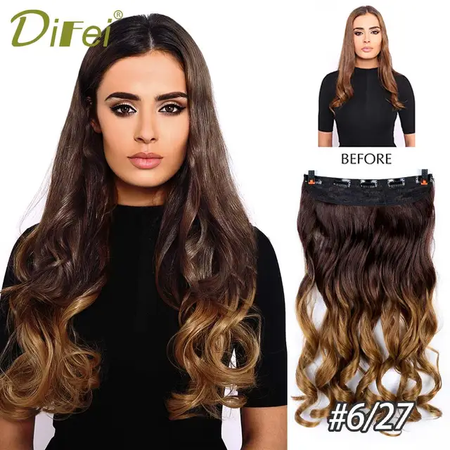 Best Price 24inch Black to Gray Straight Hair Extentions Clip in on Hair Extension Ombre Hairpiece Synthetic 5 clips ins DIFEI