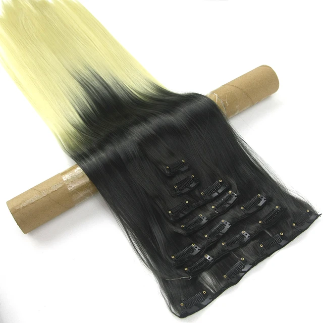 Best Price Soowee Black to Blonde 613 Ombre Hair Straight Synthetic Hairpiece Clip in Hair Extension Hair Pieces Aplique De Cabelo