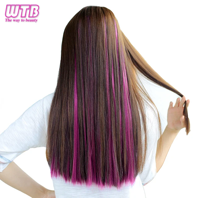 Cheap WTB 1Pcs long Straight Colored Synthetic Clip in Hair Extensions Hairpiece Pink Blue Red High Temperature Fiber Hair
