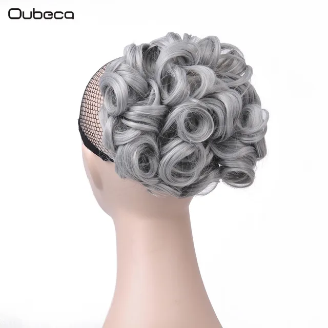Best Offers OUBECA Women's Gray Curly Chignon Elastic Rubber Band Combs Clip In Synthetic Hair Buns Hairpieces Black Blonde Online