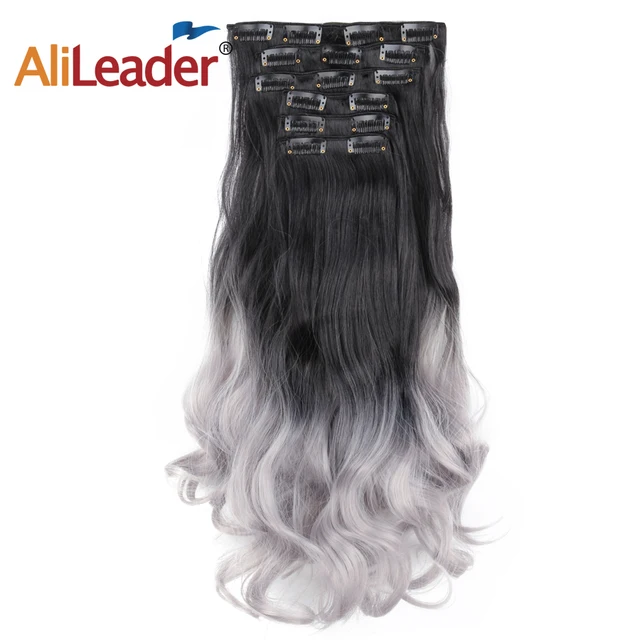 Cheap Alileader Synthetic Body Wave Long Clip In Hair Extensions Natural  Heat Resistant Hairpiece For Human Women Grey Omber Hair