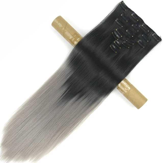 Cheap Soowee 24inch Straight Synthetic Hairpieces High Temperature Fiber Heat Resistant Black to Gray Ombre Clip in Hair Extension
