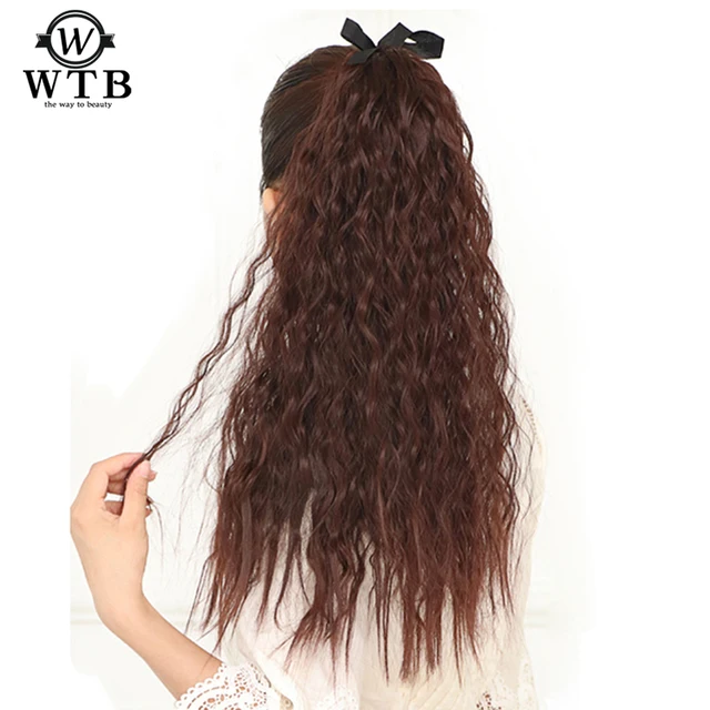 Cheap WTB wave Kinky Hair Extension Long Ponytail Clip Hair Curly Long Ponytail Hairpiece Heat Resistant Synthetic Hair Tail Clip In Cheapest