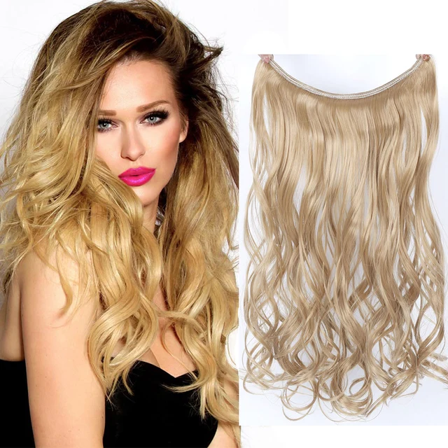 Special Offers WTB 12 Colors 24"Long Black Red Blonde Synthetic Hair Heat Resistant Hairpieces Fish Line Halo Invisible Wavy Hair Extensions Where To Buy