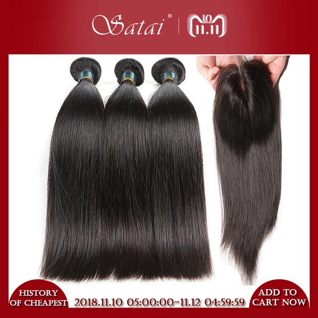 Special Price Satai Straight Hair Bundles With Closure Middle Part 2/3 Human Hair Bundles With Closure Brazilian Hair Non Remy Hair Extension Is Better Than