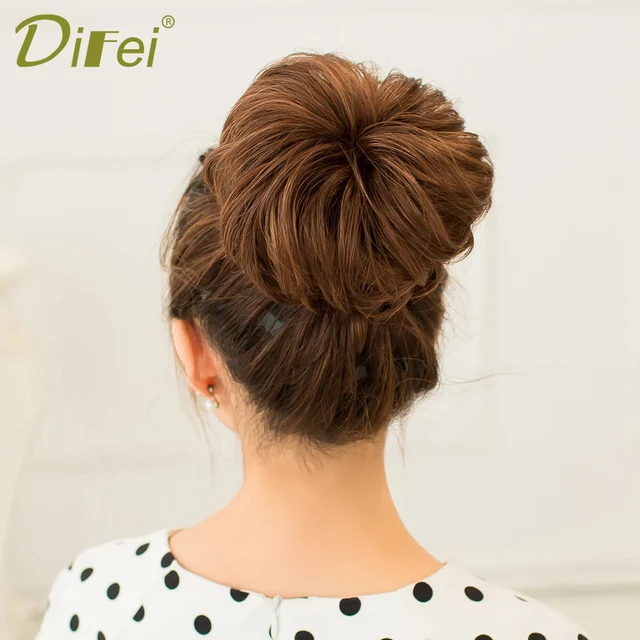 Cheap DIFEI 9 Colors Synthetic Curly Chignon Heat Resistant Hair Elastic Hairpiece Curly Natural Chignon Hair Extension